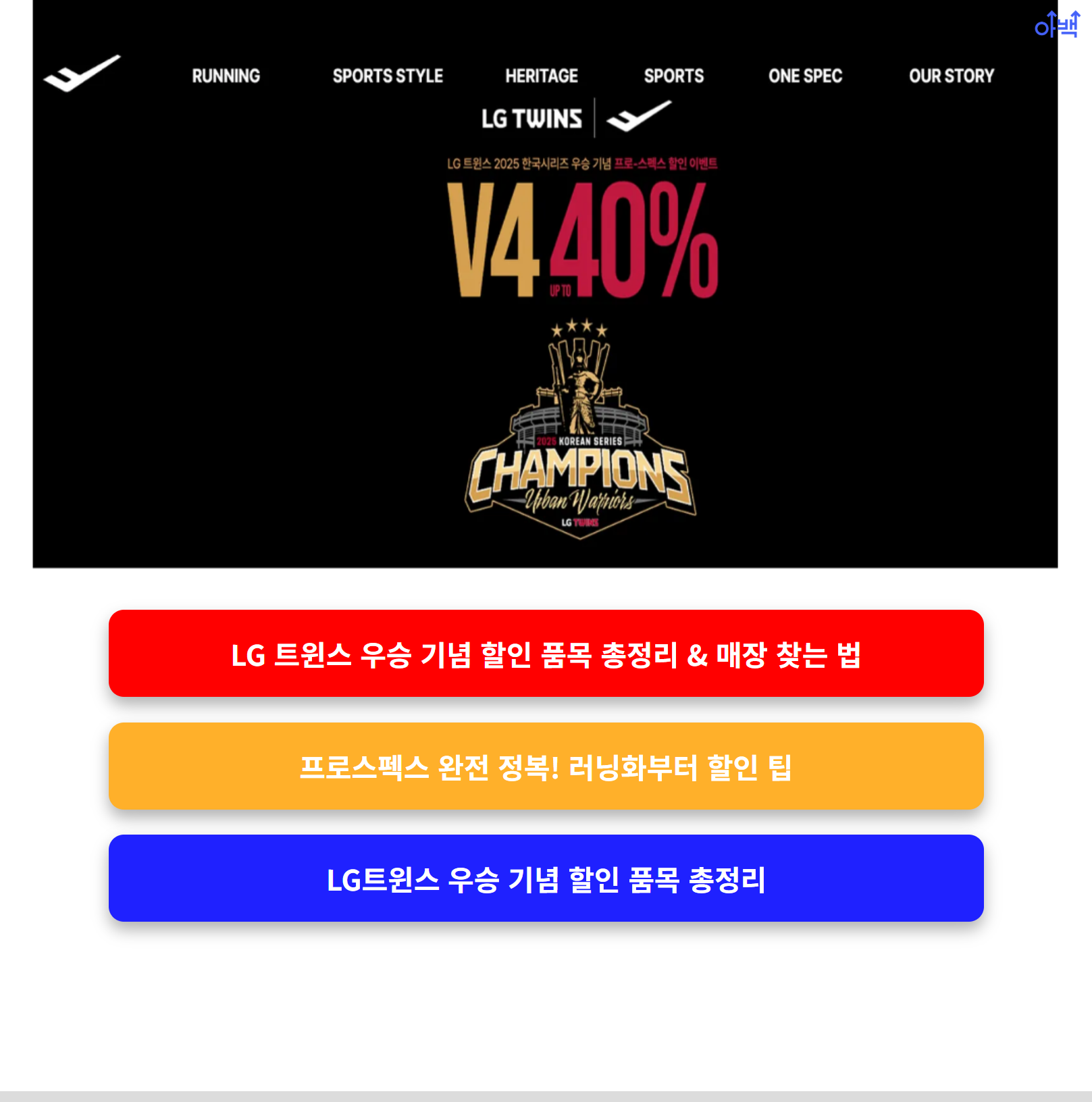 - 우승 기념 이벤트: LG 트윈스 유니폼 최대 40% 할인
