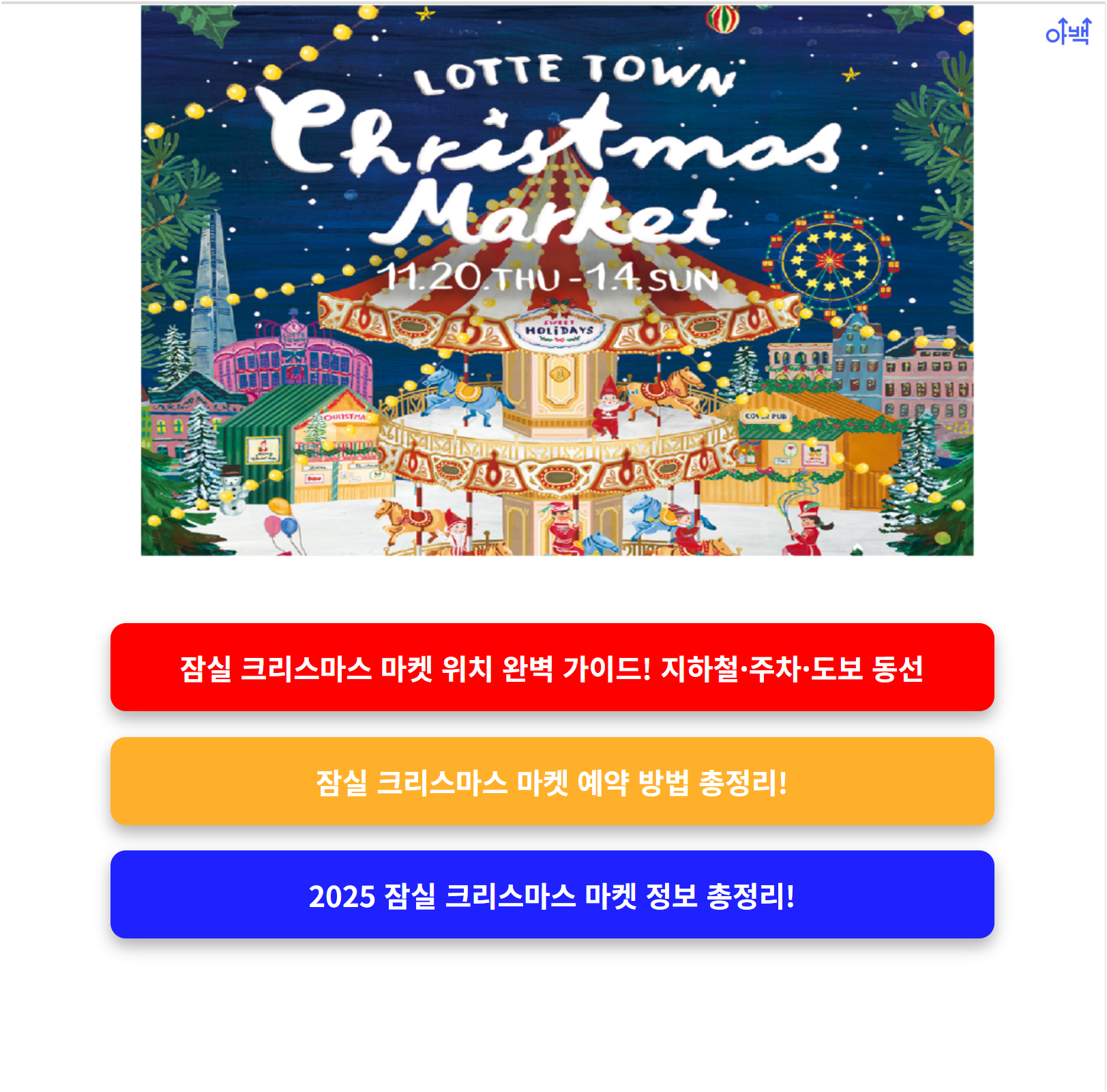 이번 글에서는 2025 잠실 크리스마스 마켓의 정확한 위치, 지하철 출구, 도보 이동 동선, 주차 정보까지